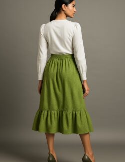 A timeless wardrobe staple, this emerald green midi skirt features a high-waisted fit and a soft, flared silhouette. Crafted for both elegance and ease, it pairs beautifully with both casual tops and dressy blouses, making it a versatile must-have.