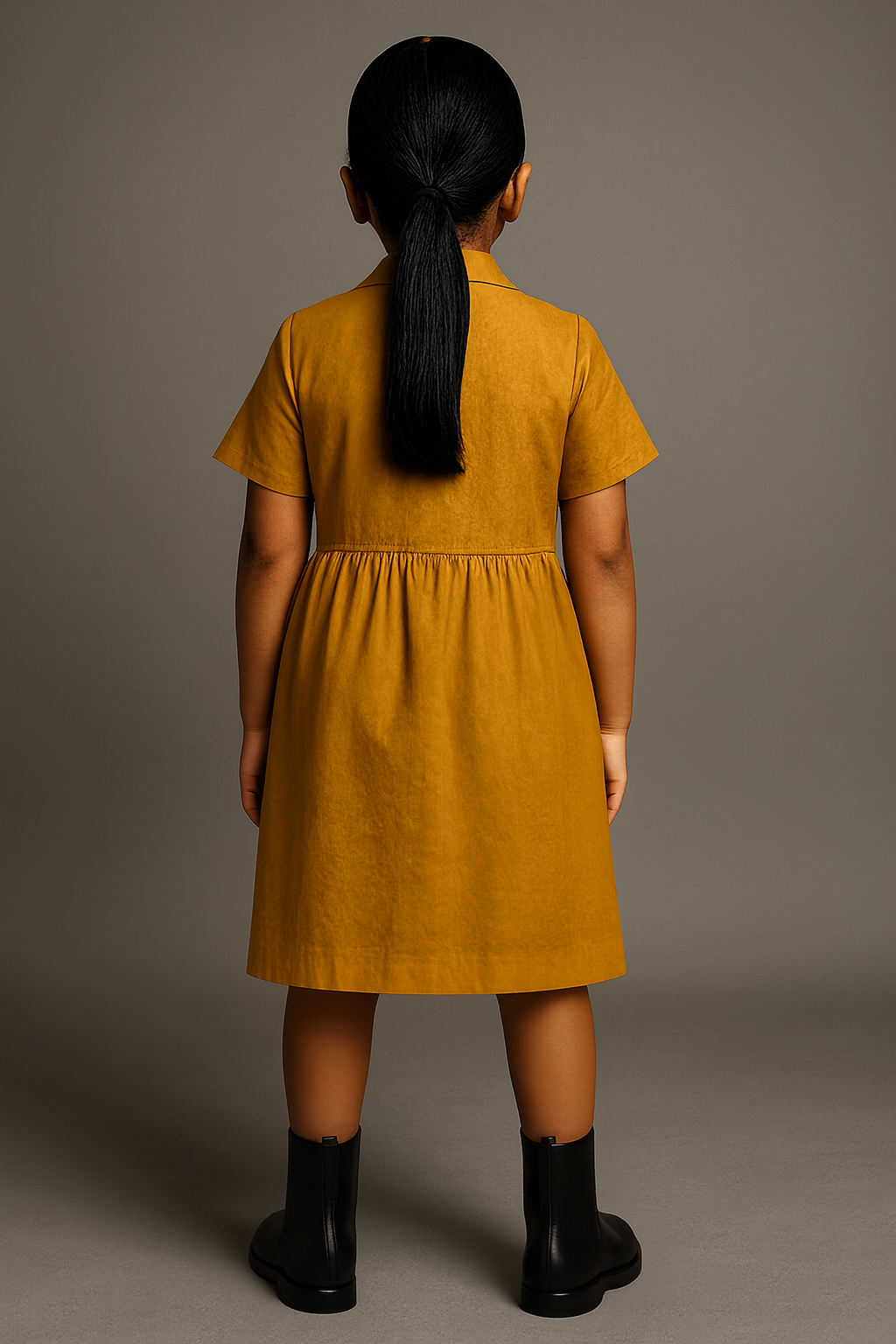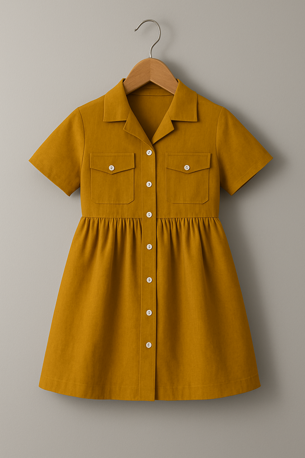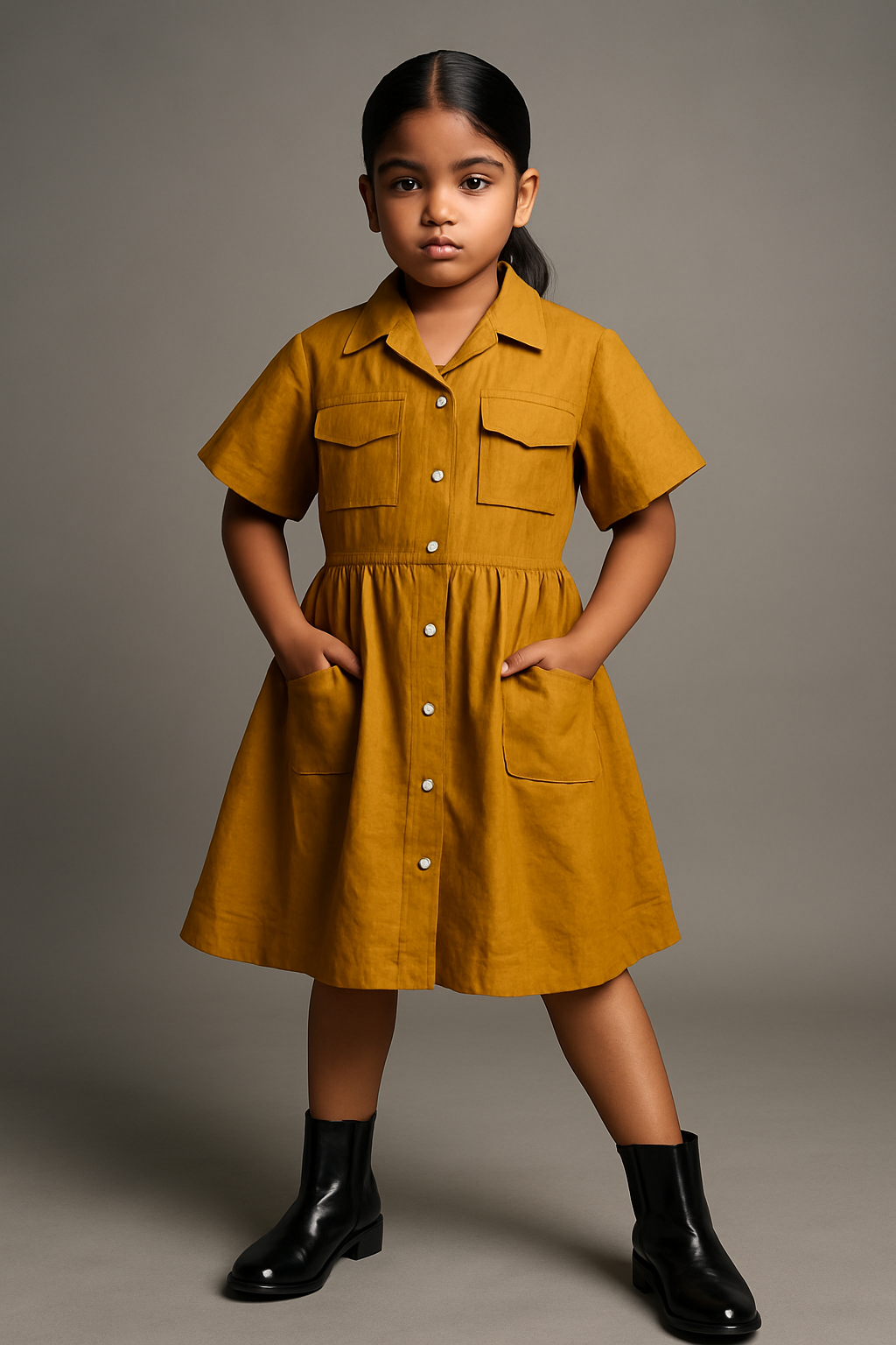 An elegant fusion of traditional technique and modern silhouette, this mustard silk shirt dress is a standout piece for young fashionistas. Accentuated with tie-dye artistry and structured with thoughtful tailoring, it balances charm and chic with ease.