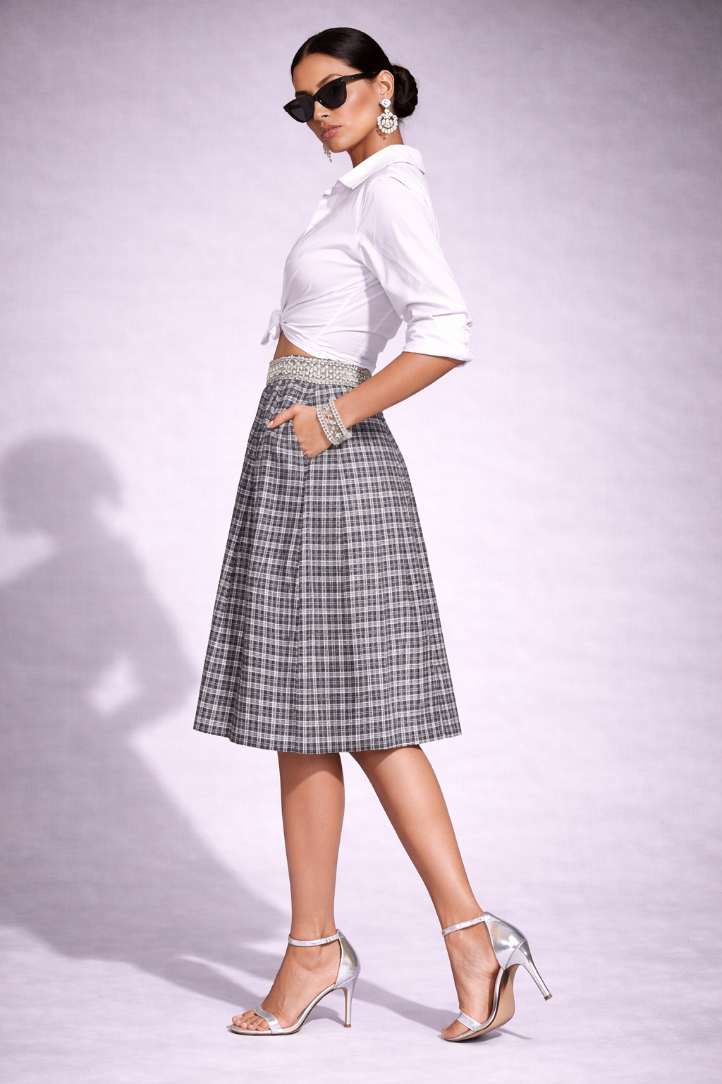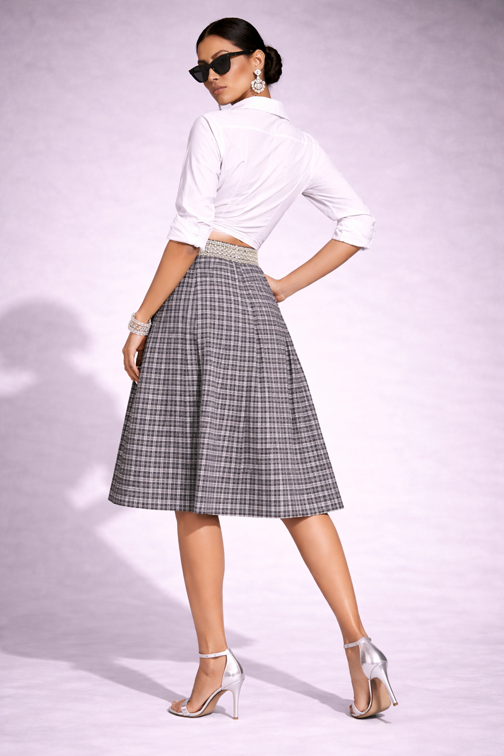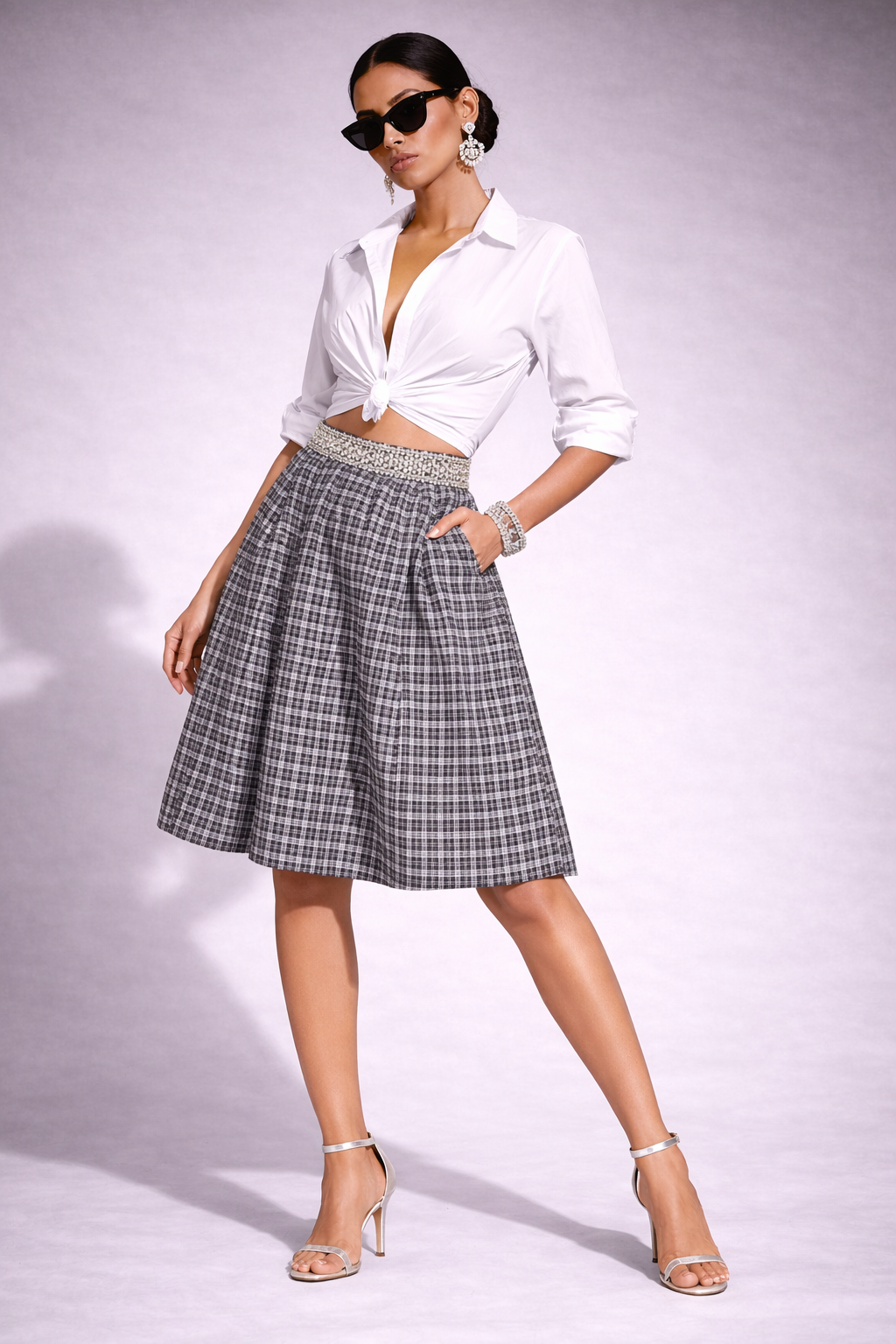 A smart and versatile knee-length skirt designed for a polished, structured look. Featuring a classic checkered pattern and soft pleats, this skirt offers comfort, movement, and timeless appeal—ideal for uniforms or refined everyday wear.
