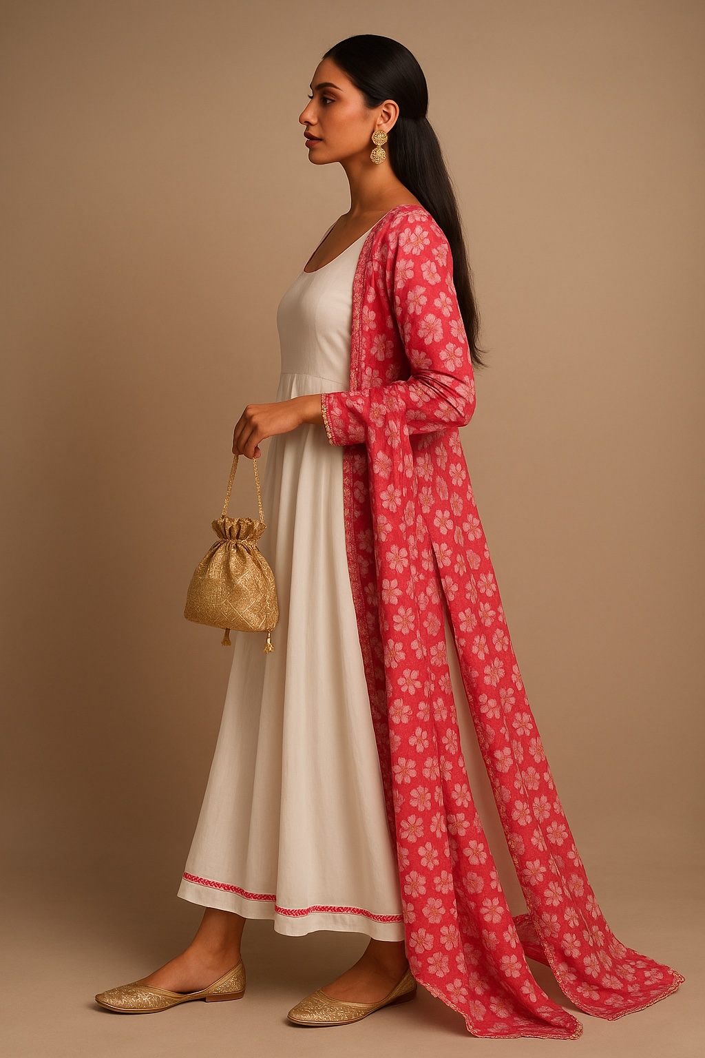 | Color | Ivory (Kurta), Red with White Print (Dupatta) |