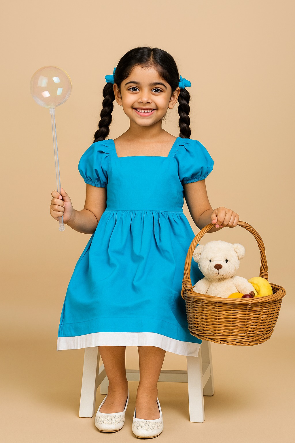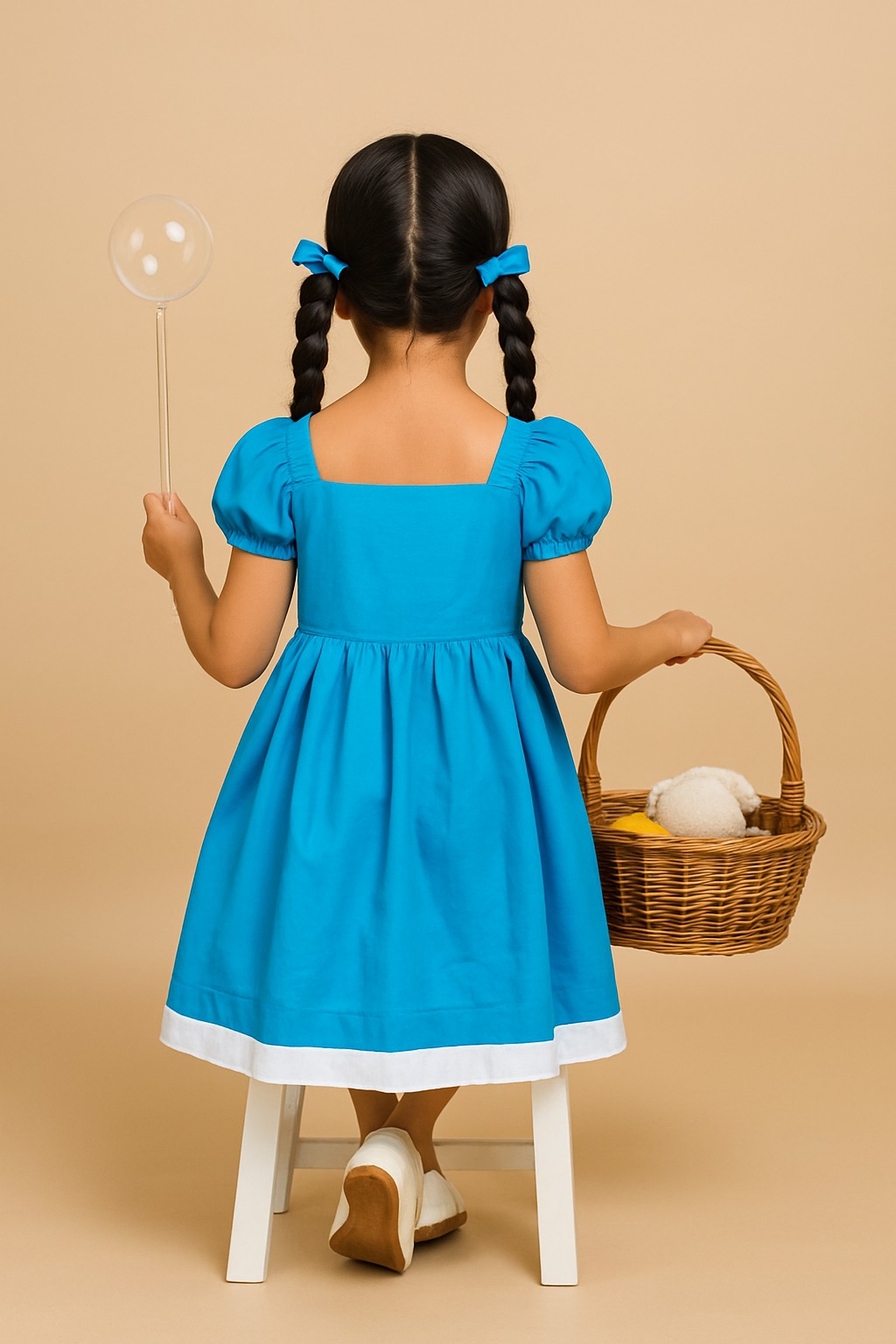 Style: Classic puff-sleeve frock with a gathered waist — perfect for playful elegance and everyday sweetness.