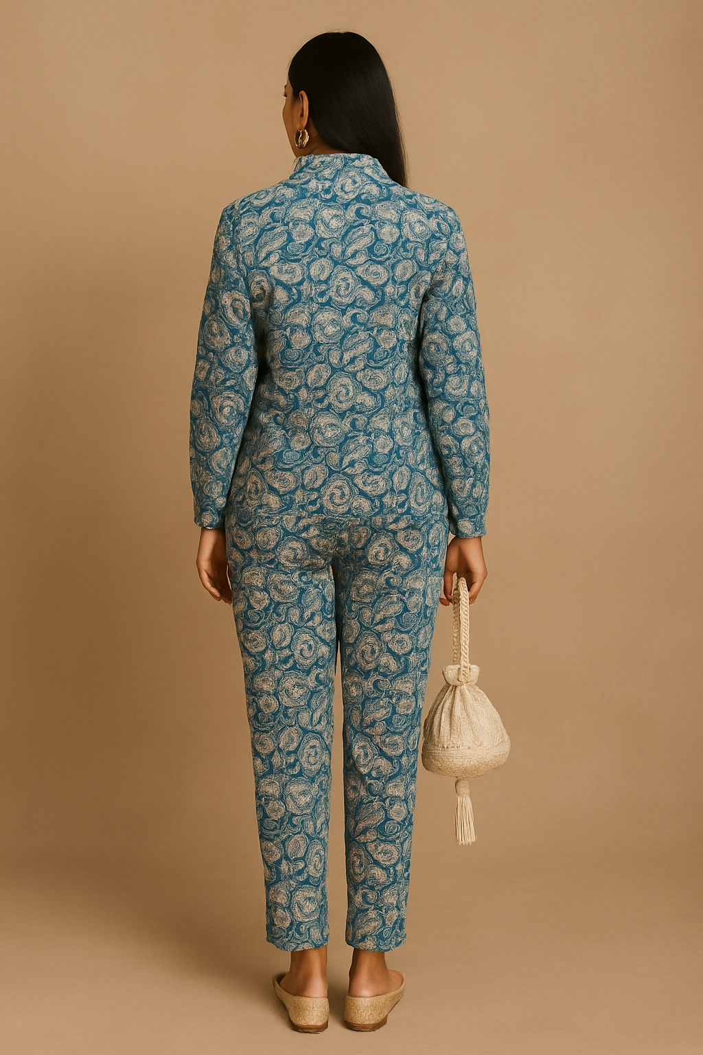 | Color | Teal Blue with Beige Floral Print |